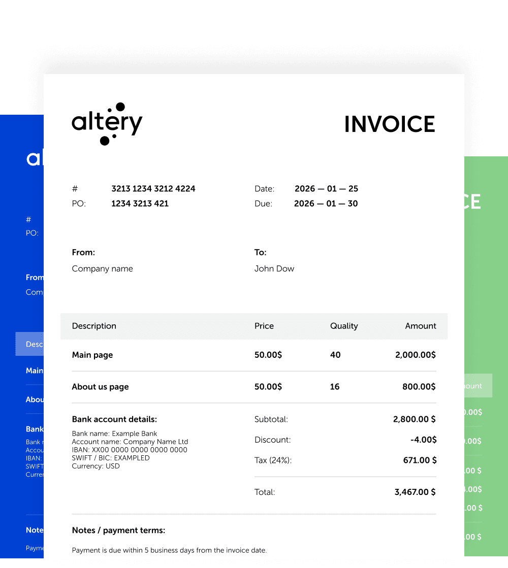 The industry standard for sending finalized documents. A PDF invoice template ensures your formatting stays locked and looks professional on any device. Best for: Final delivery to clients and securing the document against edits.